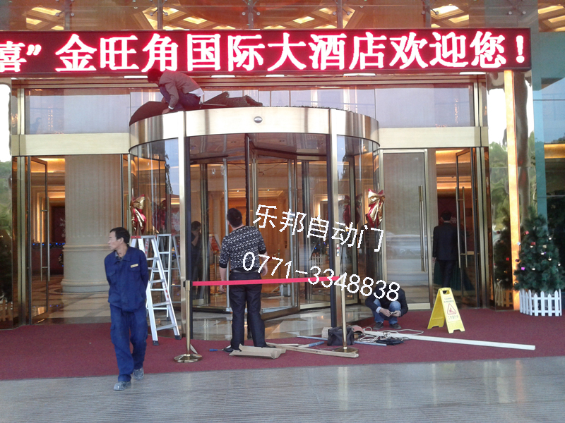 南寧金旺角酒店南寧金旺角國際大酒店自動旋轉門的模樣給整棟樓帶來的華麗,漂亮,大氣。同時,還節約能源。自動旋轉門是帶有彈性的門,可切斷室內外空氣對流直,喜歡夏天,醫院,辦公...